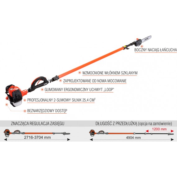 Profesjonalna i wydajna Japońska Pilarka na wysięgniku ECHO PPT-2620ES o mocy 1,4 KM.