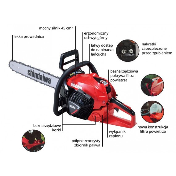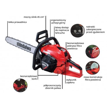 Profesjonalna i wydajna japońska pilarka spalinowa SHINDAIWA 451S o mocy 3,1 KM