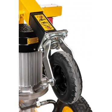 Łuparka do drewna Cedrus LS09V wyposażona jest w, ułatwiające transport, pompowane koła transportowe. Dzięki temu urządzenie można bez problemów załadować do samochodu dostawczego lub na przyczepę. Bardzo wygodnym rozwiązaniem jest również podnośnik kłód, który szczególnie sprawdza się w przypadku dużych i ciężkich kawałków drewna. Na komfort pracy wpływa również regulacja prędkości pracy od 4,2 cm/s do 21,8 cm/s.
