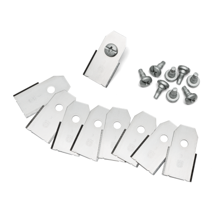 Oryginalne, bezpieczne noże Husqvarna wykonane ze stali węglowej. Łączą wysoką wytrzymałość z ostrością przez długi czas. 45 sztuk.