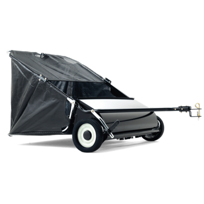 Łatwo i szybko zbiera ścinki trawy, liście lub inne resztki. Duże opony zwiększają przyczepność. Szerokość robocza - 106 cm. 4 szczotki o średnicy 30 cm. 5 obrotów szczotek przy 1 obrocie koła. Pojemność ok. 350 l. Spawana duża obudowa. Opróżnianie kosza z siedzenia ciągnika. Regulowana wysokość robocza szczotki. Wytrzymała rama rurowa. Dołączony kołek mocujący do ciągnika. Wymiary kartonu: 132,7 x 52,1 x 38,4 cm. Waga paczki 39 kg.