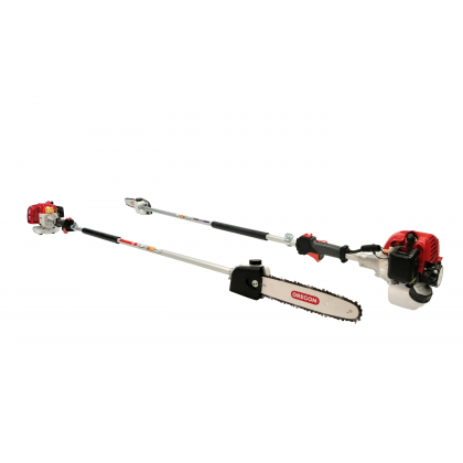 Spalinowa pilarka łańcuchowa na wysięgniku teleskopowym. Daleki zasięg, mały odrzut prowadnicy, rewelacyjna amortyzacja, automatyczna pompa olejowa. Japońska technologia i materiały dają pewność długiego okresu eksploatacji nawet najbardziej wymagających użytkowników.
