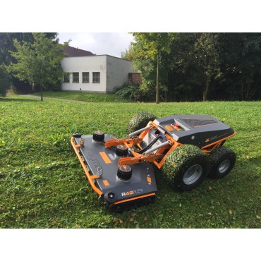 Stworzyliśmy specjalistyczne urządzenie: sterowaną radiowo kosiarkę z napędem elektrycznym oraz z napędem hybrydowym typu plug-in. RAYMO to innowacyjna technologia: niezwykle ciche użytkowanie, diametralnie zredukowana emisja CO2 w porównaniu do konwencjonalnych spalinowych kosiarek, a ponadto dzięki zdalnemu sterowaniu operator zachowuje bezpieczną odległość i nie jest narażony na wibracje, hałas i kurz. Ciche i bezemisyjne koszenie trawy jest możliwe! Bez względu na to czy wykonuje je właściciel domu, specjalistyczna firma czy służby miejskie. Każdy zasługuje na koszenie bez hałasu, spalin i wibracji. Kosiarka Raymo jest niezwykle niska, co umożliwia dojazd do trudno dostępnych miejsc. Świetnie radzi sobie na pochyłych i falistych terenach. Zerowy promień skrętu oraz napęd na cztery koła zapewniają pewną jazdę oraz funkcje manewrowe.