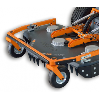 R48CRAFT został zaprojektowany w szczególności do koszenia gęstych miejskich zarośli i kontroli roślinności na farmach fotowoltaicznych gdzie trawa jest często przerośnięta i jej kontakt z konstrukcją wspierającą panel fotowoltaiczny jest trwałym zagrożeniem. SOLIDNA OCHRONA - R48CRAFT jest chroniony przez solidną stalową ramę ze zderzakami z tworzywa sztucznego, ponadto posiada przywieszone kółka samonastawne, któreabsorbują nadmierne wibracje w pofałdowanym terenie. Regulowana wysokość koszenia od 60 do 140mm może być dopasowana za pomocą bolców, które są zabezpieczone przed wypadnięciem podczas dużych wibracji. PRAWDZIWA MOC - R48CRAFT posiada nowe autorskie silniki elektryczne zapewniające moc i moment obrotowy półtora razy większy niż R42FLEX i R52TURF! SPECJALNE NOŻE – nowy deck posiada specjalny zaprojektowany przez Raymo system uchylnych noży napędzanych bezpośrednio z funkcją wyrzutu tylnego. TRUDNE TERENY I SZYBKA PRACA – R48CRAFT jest świetnym wyborem do koszenia większej i grubszej trawy, wyboistych terenów, ale również do naprawdę szybkiej pracy na terenach miejskich – moc zespołu tnącego pozwala na szybką prędkość koszenia. R48CRAFT jest w pełni kompatybilny ze wszystkimi istniejącymi nośnikami Raymo Torpedo.